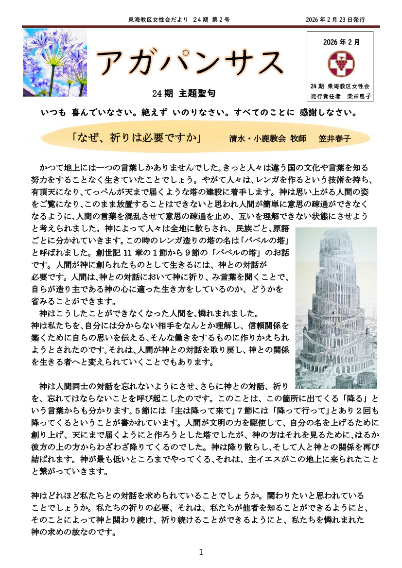 - 【東海教区】女性会だより「アガパンサス 」24期2号を掲載致しました。 2026.02.24